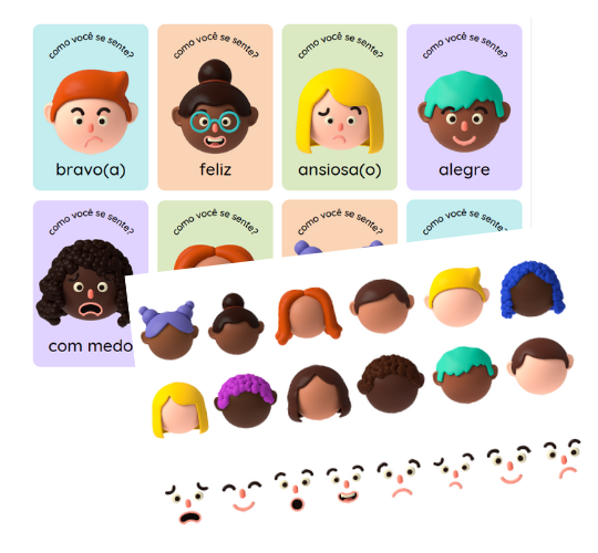 O kit de Emoções é um complemento perfeito para o processo de alfabetização.